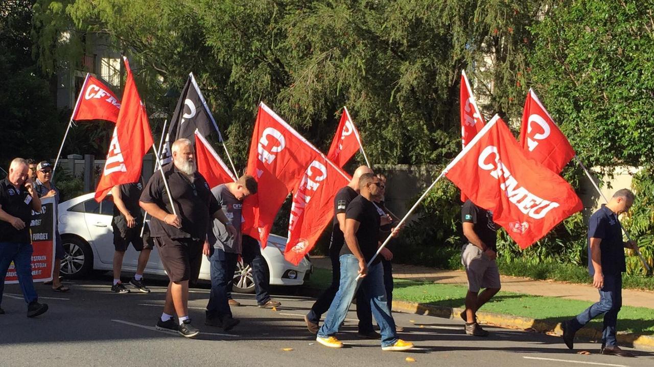 The chaotic and violent protest outside the construction, forestry, maritime, mining and energy union (cfmeu) office on monday saw people in .